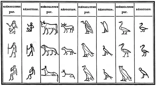 L'écriture en hiéroglyphe linéaire est une version simplifiée des hiéroglyphes égyptiens.