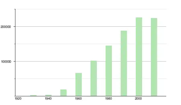 | 1950 | 19 676 | ▲ +397,12 % | |