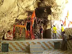 Le sanctuaire est dans une petite grotte naturelle. Il y a un autel bas en terre cuite. Il n'y a pas d'image de la déesse créée par l'homme. Une petite pierre sans forme est vénérée sous le nom de Hinglaj Mata. La pierre est enduite de sindoor (vermillon), qui donne probablement à l'endroit son nom sanskrit Hingula, qui est la racine du nom actuel Hinglaj. [6]
