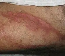 Le simple contact cutané avec les feuilles, le fruit ou la sève peut provoquer des dermatites bulleuses sévères, parfois purpuriques[6].