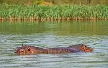 L'hippopotame amphibie consomme 40 kg de matières végétales en moyenne chaque nuit[6].