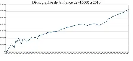 | Démographie de la France de 1226 à 2017 (en millions) | |