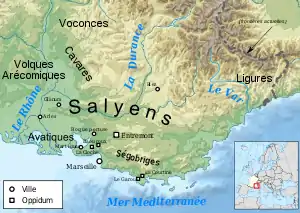 Au cours du IIe siècle av. J.-C., Marseille s'oppose en effet de plus en plus aux Salyens et aux autres peuples de la Provence orientale, d'abord seule puis avec l'aide de Rome.