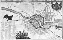 La guerre de Trente Ans, pendant la première moitié du XVIIe siècle, eut pour Berlin, comme pour bien des villes allemandes, des conséquences catastrophiques : un tiers des maisons fut endommagé, la ville avait perdu 9 000 habitants sur les 13 000 d’avant la guerre. Frédéric-Guillaume, dit le Grand Électeur, reprit en 1640 la succession de son père à la tête d'une région ruinée et dépeuplée. Inspiré par la politique des Provinces-Unies, où il avait grandi, il mit en œuvre une politique d'immigration et de tolérance religieuse. Il s'ensuivit une forte expansion urbaine, se traduisant par la fondation des nouveaux faubourgs de Friedrichswerder, Dorotheenstadt et Friedrichstadt. En 1671, il hébergea 50 familles juives fuyant l'Autriche. Par l'édit de Potsdam en 1685, Frédéric-Guillaume accueillit les huguenots français dans le Brandebourg : plus de 15 000 Français firent le voyage, 6 000 d'entre eux s'installant à Berlin.