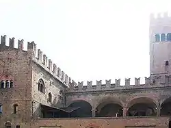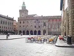 Au XIIIe siècle il y eut une période de fort essor démographique qui fit de Bologne une des plus importantes villes d’Europe de son temps. En témoignent deux enceintes successives : La première dite des Torresotti est dotée de 17 portes, la seconde dite cresta fut réalisée pendant les premières décennies du XIIIe siècle (cette dernière est encore empruntée par les actuelles voies de circulation). Le centre de la ville fut rénové avec la construction de palais communaux autour de la Piazza Maggiore et avec la construction de la torre dell'Arengo où se trouvait la cloche qui servait à rassembler les assemblées populaires.