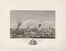 D'importants travaux sont également effectués pour moderniser les équipements portuaires : creusement de canaux en aval afin de supprimer les méandres de l'Orne et pallier son ensablement, transformation de l'Odon en bassin, construction de quais. Ainsi le port, qui était jusqu'ici imbriqué dans l'espace urbain à l'intérieur des murailles, tend à devenir autonome vis-à-vis de la ville en se développant dans sa périphérie immédiate autour de ces nouveaux bassins. L'ensemble de ces travaux d'urbanisme et portuaires s'inscrit en définitive dans « un cycle fluvio-maritime consciencieusement élaboré »[92]. L'amélioration des axes de circulation permet de relier plus efficacement le port à son arrière-pays[93], tandis que les travaux du port visent à améliorer la navigation et le transbordement des marchandises.