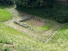 Les fondations de la cella d’un fanum ont également été découvertes lors des fouilles de la salle des gardes, près de l’hôtel de ville, et ont été conservés. De plan rectangulaire (6,2 × 5,25 m), cette cella était constituée de pierres sèches grossièrement équarries et revêtues à l'extérieur d'un enduit peint. Il semble qu'un fragment de mur trouvé à 4,5 mètres de la cella corresponde au péribole du temple[7].