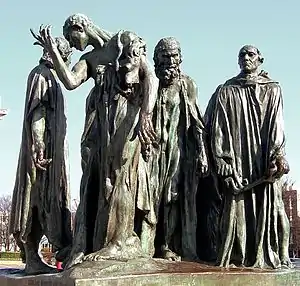 Face à l'hôtel de ville de Calais, l’original des neuf copies du monument exécuté par Auguste Rodin, les Bourgeois de Calais, est érigé en commémoration de cet évènement.