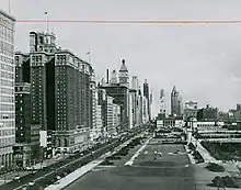 La population afro-américaine passa de 15 000 personnes en 1890[108] à 44 000 en 1910[109] et 234 000 en 1930[110]. La communauté noire commença à s'organiser : ainsi le Chicago Defender fut le premier journal noir de la ville. Chicago devint un foyer majeur du jazz américain. Un deuxième ghetto vit le jour dans les quartiers de West Side (dans la partie ouest de la ville). L'importance démographique des Afro-Américains s'accrut considérablement. À partir des années 1930, ils votaient majoritairement pour les candidats démocrates. En juillet 1932, Franklin Delano Roosevelt utilisa l'expression New Deal dans un discours prononcé à la convention du Parti démocrate réunie à Chicago[111]. Les Afro-Américains bénéficièrent des aides mises en place par ce programme.