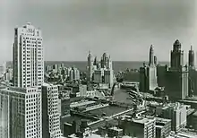 Comptant des dizaines de grandes banques à la fin du XIXe siècle et au début du XXe siècle, Chicago se place juste derrière New York en tant que place financière nationale[74]. Cependant, le commerce de gros et de détail local est tombé de plus en plus sous le contrôle d'intérêts extérieurs à la ville, qui ont racheté ou évincé les grands magasins et les détaillants dans plusieurs gammes de produits[74].