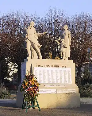 Dans la commune, des actes de résistance, tels que des sabotages, en liaison avec les cheminots, ou des attentats contre les allemands ont lieu durant l'Occupation [47]. L'usine Arts et Bois devient un foyer de résistance communiste[48]. En , les FFI déplacent un train de munitions prêt à sauter en gare de Houilles. Le , les Allemands détruisent partiellement l'arsenal et s'enfuient. Le , des femmes tondues, accusées d’avoir fraternisées avec l’ennemi, sont exhibées sur un camion, une manifestation qui sert visiblement d’exutoire à une partie de la population[48]. En 1945, l’ancien centre Hispano-Suiza, enterré dans les carrières puis réutilisé par les forces allemande devient propriété de la Marine nationale, et est dénommé centre du Commandant Millé, du nom de Georges Millé, commandant du sous-marin Protée, mort au combat en 1943.