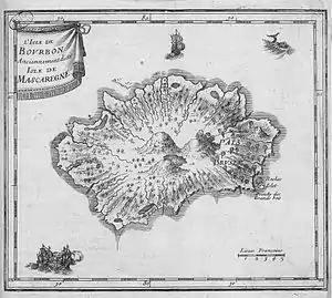 Après la découverte par les Portugais, la future île Bourbon reste, par sa position géographique, à l'écart de la route de navigation vers les Indes. Dès le XVIIe siècle, les grandes puissances maritimes (Pays-Bas, Angleterre, France et Espagne en tête) participent à l'exploitation des ressources de nouveaux territoires et s'engagent dans l'entreprise coloniale[4]. Elles « découvrent » les îles et s'y installent, utilisant la main-d'œuvre esclave, achetée principalement en Afrique et à Madagascar…