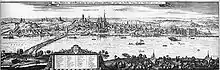 Aussi en 1236, l'empereur accorda de nouveau aux citoyens de Mayence des droits ressemblants à ceux d'Adalbert (capitulations de Mayence[4]). Favorisés par le conflit opposant Frédéric II au pape, les Mayençais furent courtisés par les deux partis ennemis. Ils obtinrent ainsi en 1242 du roi Conrad IV le droit d'établir une douane. Néanmoins, ils changèrent de camp peu après et ils obtinrent le , pour des raisons pas encore tout à fait éclaircies, un autre privilège : la souveraineté de la ville de la part de l'archevêque Siegfried III d'Eppstein. Cela comprenait non seulement la confirmation des privilèges précédents, mais également la constitution d'un parlement de 24 élus. De plus, l'obligation de conscription fut abrogée ; ainsi, les citoyens mayençais n'étaient plus tenus au service militaire, sauf pour la défense de la ville, et n'avaient plus à financer les guerres. Comme le puissant chapitre de la cathédrale de Mayence garantissait également la sauvegarde des privilèges, même après l'élection des archevêques à venir, Mayence, bien que l'archevêque restât le dirigeant de la ville, devint de facto « ville libre ». Seuls des membres des maisons patriciennes de Mayence étaient admis au parlement de la ville.