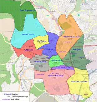 Pendant les Trente glorieuses, la ville de Montbéliard a accueilli une population immigrée importante (30 % en 2014)[12] essentiellement en raison du développement de la société Automobiles Peugeot qui concentre à Sochaux-Montbéliard la totalité de sa production automobile jusqu'en 1971 (date où un premier véhicule sort d'une 2ème usine Peugeot, construite près de Mulhouse).