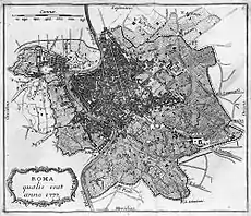 Durant le XVIe siècle, suivant Jean Delumeau, et en dépit du sac de 1527, « c'est proprement une ville nouvelle qui s'est élevée […] : 54 églises, dont Saint-Pierre ; une soixantaine de palais, dont le Vatican ; 20 villas aristocratiques ; des logements pour 50 000 nouveaux habitants ; 2 quartiers nouveaux ; plus de 30 rues neuves ; 3 aqueducs […] ; au moins 35 fontaines »[3]. De 55 000 habitants vivant dans « 9 285 case » vivant à Rome en 1526, la population passe à environ 45 000 en 1555[4] — conséquence du sac de 1527 et de l'épidémie de peste qui s'ensuivit — mais croît ensuite pour atteindre 100 000 à la fin du siècle[5].