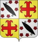 - Blasonnement : Écartelé, au Ier de gueules au lion d'or armé et lampassé d'azur, au IIe fascé de sable et d'or de six pièces, au IIIe d'rargent à la fasce de gueules, au IVe d'or au lion de sable, un ecusson d’azur à la croix d’or accompagné de dix-huit billettes du même, cinq et cinq en chef posées en sautoir, quatre et quatre en pointe posées deux et deux brochant sur le tout.