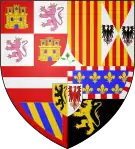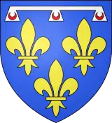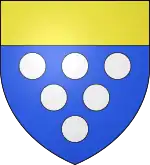- Blasonnement : Ecartelé : au 1 et au 4, de sable fretté d'argent au chef d'argent chargé d'un lion issant de gueules armé et lampassé d'or, au 2 et au 3 d'or à la croix de gueules chargée de 5 coquilles renversées d'argent, cantonnée de seize alérions d'azur, quatre par canton; sur le tout parti : au I d'azur à la bande d'argent accostée de deux cotices doubles d’or, potencée et contre-potencée en dedans, qui est de Champagne et au II : d'azur fleurdelysé d'or au lion d'or.