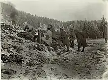 L'offensive austro-allemande écrase les défenses serbes dès les premières heures de l'attaque, le pilonnage massif des positions serbes ayant réduit au silence l'artillerie serbe[59]. La rupture est obtenue au terme de trois jours de combats, le . Après la capitulation du Monténégro, au début de l'année 1916, Conrad, chef d'état-major austro-hongrois, lance ses troupes en Albanie, afin de prendre au piège les Serbes qui retraitent[69]. Scutari est ainsi occupée le , Saint-Jean de Medua, le 24, Durazzo le 28[70].