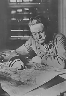 Géographiquement articulé au Front russe, un nouveau front est ouvert par la Roumanie en . En dépit des menaces d'Ottokar Czernin, alors ambassadeur austro-hongrois à Bucarest, des négociations avec les Alliés sont menées et conclues au début de l'été 1916, un traité d'alliance préparé, un plan d'intervention décidé. Mais, tenu en échec, ce plan entraîne une réaction des puissances centrales, dans laquelle la double monarchie engage des unités de la 1re armée austro-hongroise basées en Transylvanie[89], ainsi que la flottille du Danube[90]. Un plan d'invasion est conçu par Conrad[73], qui a su organiser la résistance à l'offensive roumaine quelques semaines auparavant[74].