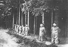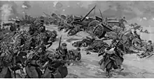 Après des succès initiaux en Galicie lors des batailles de Krasnik et de Komarów, les troupes de la double monarchie, en difficulté sur le front serbe[79], doivent rapidement reculer et abandonner, après la défaite de Lwów, la quasi-totalité de la Galicie. Seule la forteresse de Przemyśl, encerclée, résiste jusqu'en [80]. L'avance russe, au grand effroi des populations de la double monarchie[38], est arrêtée pendant l'hiver 1914-1915 lors de la Bataille des Carpates que Conrad, le chef d'état-major austro-hongrois, a mises en état de défense[80].