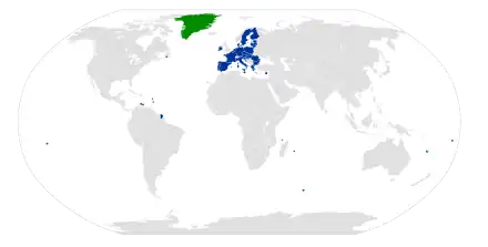 47. Les Antilles néerlandaises sont dissoutes le 10 octobre 2010 et contenait les îles d'Aruba (qui a quitté les Antilles néerlandaises en 1986), Bonaire, Curaçao, Sint Maarten, Saba et Saint-Eustache. Aruba, Curaçao et Sint Maarten sont devenus des États autonomes du royaume des Pays-Bas, et restent des territoires d'outre-mer de l'Union européenne. Bonaire, Saint-Eustache et Saba sont les municipalités spéciales des Pays-Bas et resteront légalement territoires d'outre-mer au moins jusqu'en 2015.