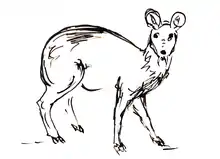 Le plus ancien dictionnaire chinois, le Er ya (爾雅), composé dans les derniers siècles av. J.-C., très laconiquement indique « Père-musc, pieds glutineux » 麝父, 麕足 Shè fù, jūn zú[4],[n 3]. La glose de Guo Pu (郭璞 ) explicite la métaphore : « Le pied est comme le riz gluant, parfumé ».