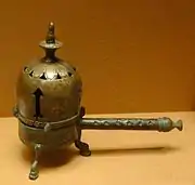 Les substances parfumées sont principalement utilisées pour fabriquer de l’encens et des onguents. L’encens de luxe, nommé le nadd, est composé de calambac, musc et ambre gris[34]. À l’époque des Omeyyades, on brûle de l’encens dans des cassolettes près du calife en audience. Sous les Abbassides, la coutume était de parfumer les lieux de séjour, les salles de banquets et les salons en diverses circonstances réjouissantes[33]. Une fois la résine ou le bois parfumé déposé sur les braises, on attend de la fumée odorante qui s’élève qu’elle parfume les vêtements et donne une impression de confort à ambiance.