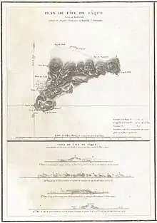 En 1786, le navigateur français La Pérouse débarqua sur l’île de Pâques au cours de sa circumnavigation terrestre, effectuée sur l’ordre du roi Louis XVI. La Pérouse avait l’ordre de dessiner des cartes précises afin de contribuer, avec l’étude des peuples du Pacifique, à la formation du dauphin[37].