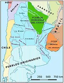 De même, dans le nord du territoire de l'Argentine actuelle, les tribus peuplant la région du Gran Chaco restèrent libres face aux colonisateurs, et cela jusqu'à la fin du XIXe siècle.