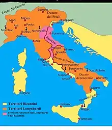 En 898, les Byzantins vainquirent et chassèrent les Sarrasins de l'Italie méridionale. Ils y dirigèrent le thème de Lombardie (Longobardie du Catépanat d'Italie).