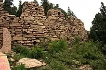 S'établissant dans la zone de transition entre les terres agricoles et la steppe, les Khitans sont devenus semi-sédentaires comme leurs prédécesseurs Xianbei des Wei du Nord et ont commencé à utiliser les méthodes de défense chinoises. C'est ainsi qu'en 1026, les Liao ont fait construire des longs-murs qui traversaient le centre de la Mandchourie depuis le nord du Xian de Nong'an jusqu'aux rives de la rivière Songhua[103].