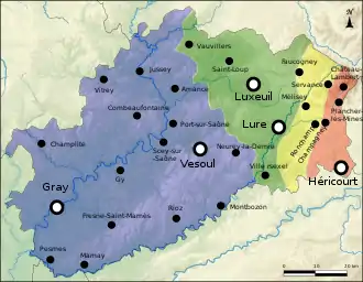 En 1333, le bailliage d'Amont, l'un des trois bailliages de Franche-Comté, qui a pour capitale Vesoul, est créé par Philippe VI de France et correspond plus ou moins au département de la Haute-Saône de 1790[1].