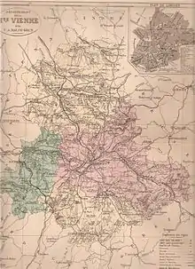 Il tire son nom de la rivière qui le traverse, la Vienne, affluent en rive gauche de la Loire, née sur le plateau de Millevaches en Corrèze. De vifs débats naissent pour le choix des chefs-lieux. Les villes développent des arguments proches de ceux du XVIe siècle, afin d'obtenir un rang administratif significatif, ayant une éventuelle importance sur l'économie et le renom. En Haute-Vienne, si Saint-Junien, Saint-Léonard, Bellac, Saint Yrieix, le Dorat obtiennent d'être chefs-lieux de districts (futures sous-préfectures), le choix de Limoges comme préfecture est unanime.