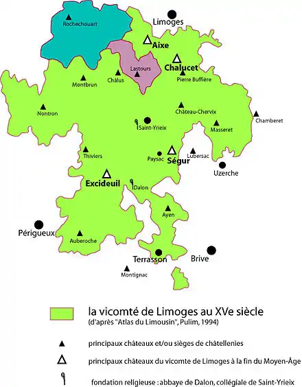 Le Limousin n'est plus qu'un territoire partagé entre diverses seigneuries, avec pour conséquence une forte insécurité. Les vicomtes réussissent à étendre leur influence vers le Périgord. Des châteaux sont construits sur des mottes, dont les Châlucet, Lastours.