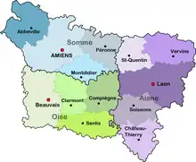 - En second lieu, une des ex vingt-deux régions administratives de la France métropolitaine réunissant les trois départements de la Somme, de l'Oise et de l'Aisne de 1964 au 1er janvier 2016 et dont la capitale régionale fut Amiens.