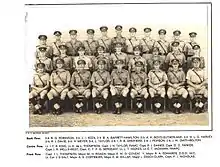 Après quelques escarmouches[49], la Première Guerre ndébélé éclate en . Très vite, grâce à leur puissance de feu, les troupes de la BSAC progressent vers Bulawayo tandis que les Matabélés subissent une grave défaite à la bataille de la Shangani (). Le Kraal royal ndébélé de Bulawayo est incendié par Lobengula, obligé de quitter sa capitale, pour s'enfuir vers le nord [n 3]. Envoyée en reconnaissance à l'avant de la colonne principale du major Patrick Forbes à la poursuite du monarque, la patrouille Shangani, composée de 34 soldats issus de la police montée du Mashonaland et de la police frontalière du Bechuanaland et dirigée par le major Allan Wilson, est prise en embuscade tendue par plus de 3 000 guerriers matabélés dans l'après-midi du . Assiégés, les soldats sont massacrés. Son destin tragique marque la mémoire culturelle de l'Empire britannique et devient un événement fondateur de l'histoire nationale de la Rhodésie du Sud où elle est considérée comme l'équivalent rhodésien du siège de Fort Alamo ou de la bataille de Little Big Horn aux États-Unis. Les membres de la patrouille, en particulier Wilson et le capitaine Henry Borrow, deviennent les premiers héros nationaux de Rhodésie incarnant le courage face à des difficultés insurmontables. Lobengula décède quant à lui de la variole, dans la clandestinité, le 22 ou le [50] tandis que ses terres sont partagées par la British South Africa Company : chaque Blanc reçoit ainsi 3 000 morgens, 20 titres aurifères et une partie du bétail ayant appartenu à Lobengula. Quant aux autres chefs tribaux matabélés, ils acceptent à l'unanimité la paix avec la BSAC lors d'un indaba tenu à la fin du mois de [51] alors que Cecil Rhodes décide de financer par la suite l'éducation de trois des fils de Lobengula[52].