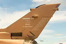 Au cours de la préparation de la guerre du Golfe, les chasseurs de la RAF sont basés en Arabie saoudite et au Koweït. Le 17 janvier 1991, la campagne aérienne principale débute au cours duquel plus de 100 avions de la RAF participent à pratiquement tous les rôles possibles[44]. Cela marque un tournant important dans l'histoire de la RAF car ce fut la première fois que l'armée utilisait des munitions à guidage de précision en quantités importantes. Dans les années suivant la fin de la guerre, la RAF est impliquée dans des opérations visant à faire respecter les zones d'exclusion aérienne au-dessus de l'Irak et participe au bombardement de l'Irak en 1998[45].