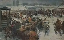 De 1918 à 1921, la Russie et les pays voisins sont plongés dans la guerre civile, au cours de laquelle les Russes blancs (tsaristes ou républicains), les indépendantistes des différentes nationalités, la légion tchécoslovaque formée d'anciens prisonniers de guerre austro-hongrois, les anarchistes de Makhno et les armées de la France, du Royaume-Uni, du Japon et des États-Unis, s'opposèrent à l'Armée rouge mise en place par Trotsky jusqu'en 1921. Cette dernière l'emporte, en partie grâce aux dissensions internes qui désorganisent ses adversaires.
