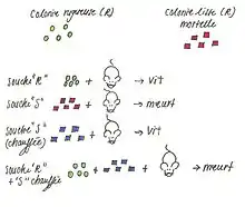 Frederick Griffith est un biologiste britannique qui œuvre plutôt dans l'ombre. Au début du XXe siècle, il est engagé par le gouvernement britannique pour mener des études sur une bactérie causant une grande quantité d'infections chez l'homme : le pneumocoque[15]. C'est dans ce contexte qu'il mène une expérience portant sur deux souches de bactéries, une infectieuse ayant une enveloppe de polysaccharides (souche S), et l'autre n'étant pas infectieuse et ne possédant pas cette enveloppe (souche R). En injectant à une souris la bactérie infectieuse de la souche S, il observe que cette dernière meurt. En lui injectant la bactérie de la souche R, la souris demeure vivante. À la suite de ces résultats, Griffith tente d'injecter à des souris la souche infectieuse de bactéries (S) ayant été anéanties par la chaleur. Résultat : les souris demeurent vivantes.