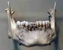 D'autres indications sur des traitements dentaires se trouvent il y a 9 000 à 7 500 ans à Mehrgarh, (au Béloutchistan, aujourd'hui Pakistan), un des lieux de fouilles les plus importants pour l'archéologie de groupe d'habitations préhistoriques de l'Asie du Sud[7]. Les habitants semblent avoir été d'habiles orfèvres, et semblent avoir tourné leurs capacités aussi à creuser de petites cavités cariées (d'un diamètre allant de 1,3 à 3,2 mm et d'une profondeur comprise entre 0,5 et 3,5 mm[8]) avec des outils de pierre, comme ils les utilisaient pour fabriquer des colliers de perles[9]. La reconstruction des origines de la médecine dentaire montre que les méthodes de soin de l'époque étaient apparemment très efficaces. La première obturation dentaire, faite de cire d'abeille, a été découverte en Slovénie et date d'environ 6 500 ans. Une canine fracturée a ainsi été refaite[10].