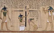 La pesée est une mesure si habituelle en Égypte[réf. souhaitée] qu'on l'incorpore aux rituels et aux croyances telles que la pesée de l'âme par la déesse Maât, symbole de la norme universelle dans la mythologie égyptienne : équilibre, justice, vérité, droiture et confiance.