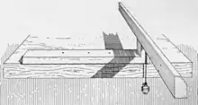 Dans ces premières horloges, ce mécanisme est un foliot, simple tige aux extrémités de laquelle sont accrochées deux masses, qui peut osciller horizontalement autour d'un axe vertical la supportant en son milieu. Les masses lui confèrent l'inertie nécessaire pour stopper la chute du poids. Solidaires de l'axe d'oscillation, deux palettes viennent alternativement bloquer la roue de rencontre (qui donne son nom à ce premier type d'échappement) qu'entraîne le poids moteur[3].