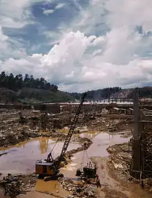 Au Guana anglais, la construction du Barrage d'Akosombo sur la Volta débuta en 1961 à l’initiative de Kwame Nkrumah, Premier ministre du Ghana indépendant, afin de développer l’industrie et de réduire la dépendance du pays aux seules plantations de cacao[40]. La plus grande partie (80 %) de l’électricité produite alimente la Volta Aluminum Company. L'investissement est financé conjointement par des prêts de la Banque internationale pour la reconstruction et le développement, de la Banque mondiale, des États-Unis et du Royaume-Uni à hauteur de 40 millions de dollars, le Ghana apportant les 69 millions nécessaires à la construction de l’usine hydroélectrique.