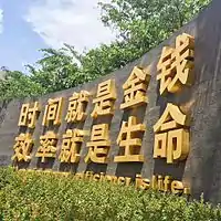Deng développe l’idée de zones économiques spéciales, où l’investissement étranger peut se faire sans restriction du gouvernement, sur base capitalistique. Le 31 janvier 1979, la zone industrielle Shekou de Shenzhen a été fondée, devenant la première zone expérimentale en Chine à « s'ouvrir »[53]. Sous la direction de Yuan Geng (袁庚), le « modèle de développement Shekou » s'est progressivement formé, incarné dans son célèbre slogan « Le temps c'est de l'argent, l'efficacité est la vie (en) (时间就是金钱, 效率就是生命) », qui s'est ensuite largement répandu dans d'autres parties de la Chine[53]. En janvier 1984, Deng Xiaoping a effectué sa première tournée d'inspection à Shenzhen et Zhuhai, louant la « vitesse de Shenzhen (en) » du développement ainsi que le succès des zones économiques spéciales[54],[55]. En mai 1984, la Chine a ouvert 14 autres villes côtières aux investissements à l'étranger, dont Shanghai, Canton et Tianjin.