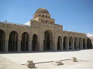 En 800, le calife abbasside Hâroun ar-Rachîd (756-809) délègue son pouvoir en Ifriqiya à l’émir Ibrahim ibn al-Aghlab (756-812)[34] et lui donne le droit de transmettre ses fonctions par voie héréditaire[35]. Al-Aghlab établit la dynastie des Aghlabides, qui règne durant un siècle sur Tamazgha (Maghreb) centrale et orientale. Le territoire bénéficie d’une indépendance formelle tout en reconnaissant la souveraineté abbasside[35]. La Tunisie devient un foyer culturel important avec le rayonnement de Kairouan et de sa Grande mosquée, un centre intellectuel de haute renommée[36]. À la fin du règne de Ziadet Allah Ier (817-838), Tunis devient la capitale de l’émirat jusqu’en 909[37].