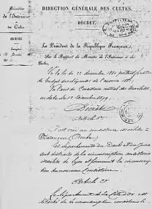 Jacques Auscher écrit alors de nouveau au préfet : « Nous attendons en vain depuis 10 ans. Nous n'avons reçu que de bonnes paroles du Ministère des Cultes. 4000 francs seraient nécessaires et ne figurent pas au budget de 1881. Pourtant, ce serait un attrait puissant pour l'immigration alsacienne, déjà si forte dans cette région : et cette création est vivement désirée par un des groupes les plus nombreux des Israélites français. Enfin, l'attachement si profond des Israélites de cette région à notre excellent Gouvernement n'est il pas digne d'une récompense désirée depuis dix ans et qui chargera si peu, si faiblement notre budget national[18]. » Le ministre de l'Intérieur et des Cultes, Ernest Constans, finit par donner satisfaction à la communauté. Le , est officiellement créé un Consistoire pour le Doubs et le Jura, regroupant les communautés de Montbéliard, L'Isle-sur-le-Doubs, Baume-les-Dames, Dole ainsi que Lons-le-Saunier[18],[2].