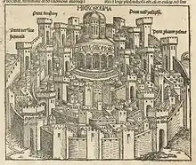 - l'une des légendes fondatrices de la communauté juive de Djerba, retranscrite pour la première fois en 1849[16], raconte que des Cohanim (membres de la classe sacerdotale israélite) se seraient installés dans l'actuelle Tunisie après la destruction du Temple de Salomon par l'empereur Nabuchodonosor II en 586 av. J.-C.[17] ; ils auraient emporté un vestige du Temple détruit, conservé dans la Ghriba de Djerba[18], et en auraient fait un lieu de pèlerinage et de vénération jusqu'à nos jours.
