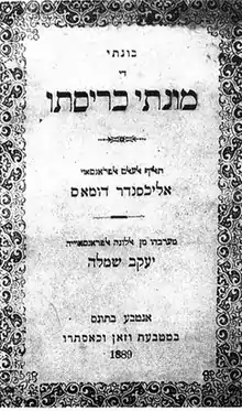 - Yeter ha-Baz (1787) de Nehoraï Jarmon, nouvelle sur le Talmud et le Mishné Torah de Moïse Maïmonide[126],[127] ;