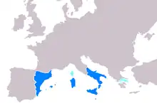 La Couronne d'Aragon fut avant tout une puissance maritime du Moyen Âge tardif qui contrôla le nord-est de l'Espagne et le sud-est de l'Italie actuelles, ainsi que certains territoires à travers toute la mer Méditerranée, en Grèce notamment. Elle fut établie en 1137, lorsque le royaume d'Aragon et le comté de Barcelone unifièrent leurs dynasties. En 1479 la Couronne d'Aragon s'unit de la même façon à celle de Castille, marquant les prémices du futur Empire espagnol. La Couronne d'Aragon persista jusqu'en 1716, année où elle fut abolie par les décrets de Nueva Planta à la suite de sa défaite lors de la guerre de Succession d'Espagne.