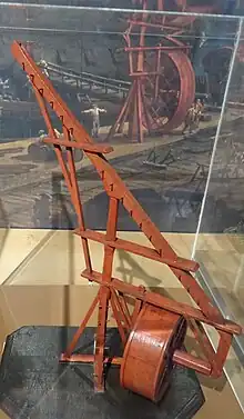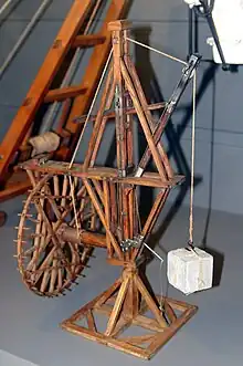 ![]() Grue médiévale reconstituée devant l'abbaye de Hambye ![]() Une grue médiévale sur le chantier médiéval de Guédelon |